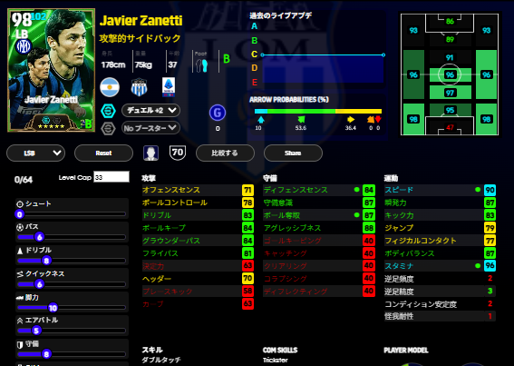 ポジションはSTを追加し、スキルも在庫があった「ワンタッチシュート」「スルーパス」「スーパーサブ」を付けました。