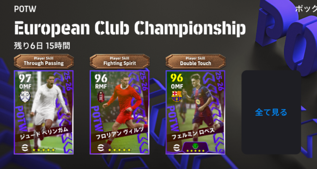今週更新は、週間FPだけでなくCL週間FPでも無料で1回チャレンジでき、少なくとも2名は補強が可能。
