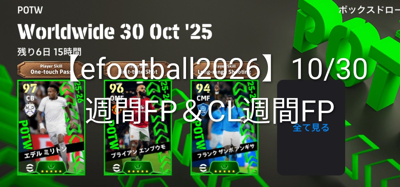 ■ 週間FP(Worldwide 30 Oct 25)無料分結果!