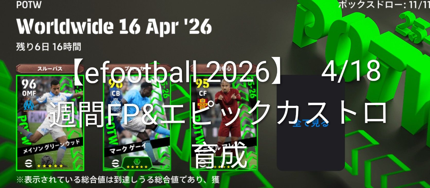 【無課金でも強い!】無料エピック「カストロ」は当たり?4/16週間FP&マスターリーグ報酬まとめ【イーフト2026】
